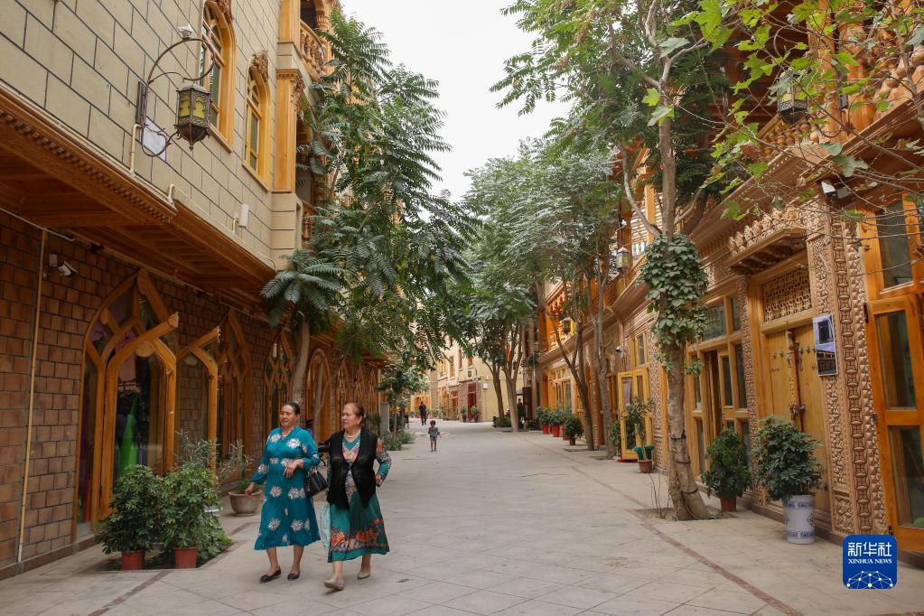這是在新疆和田市拍攝的由北京市援疆資金支持改造的團城(2019年8月1日攝)。為改善居住環(huán)境,保持和田歷史文化街區風(fēng)貌,當地利用北京市援疆資金,對和田老城區進(jìn)行保護、安居、旅游與就業(yè)四位一體的改造。新華社發(fā)(許珠珠 攝)
