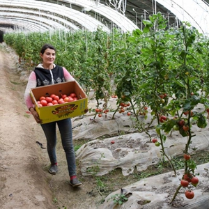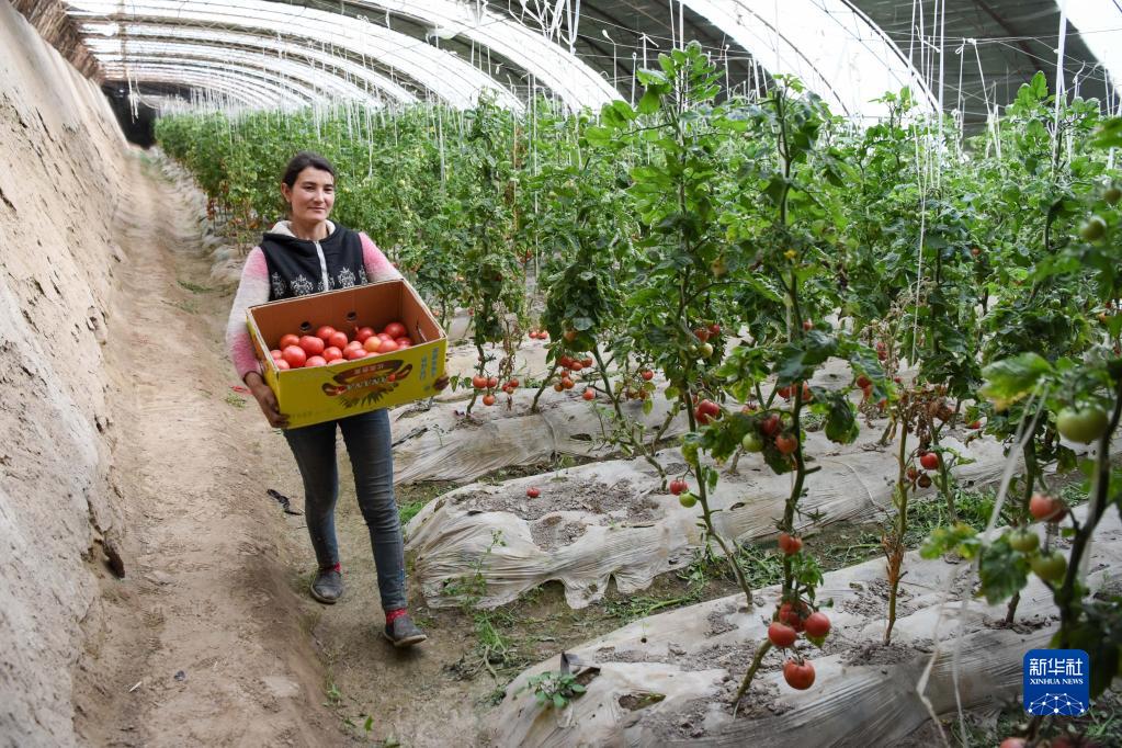 在新疆莎車(chē)縣伊什庫力鄉設施農業(yè)基地,種植戶(hù)搬運剛采摘的西紅柿(2020年3月18日攝)。該設施農業(yè)基地是在上海援疆莎車(chē)分指揮部協(xié)調推動(dòng)下建立的。新華社記者 丁磊 攝