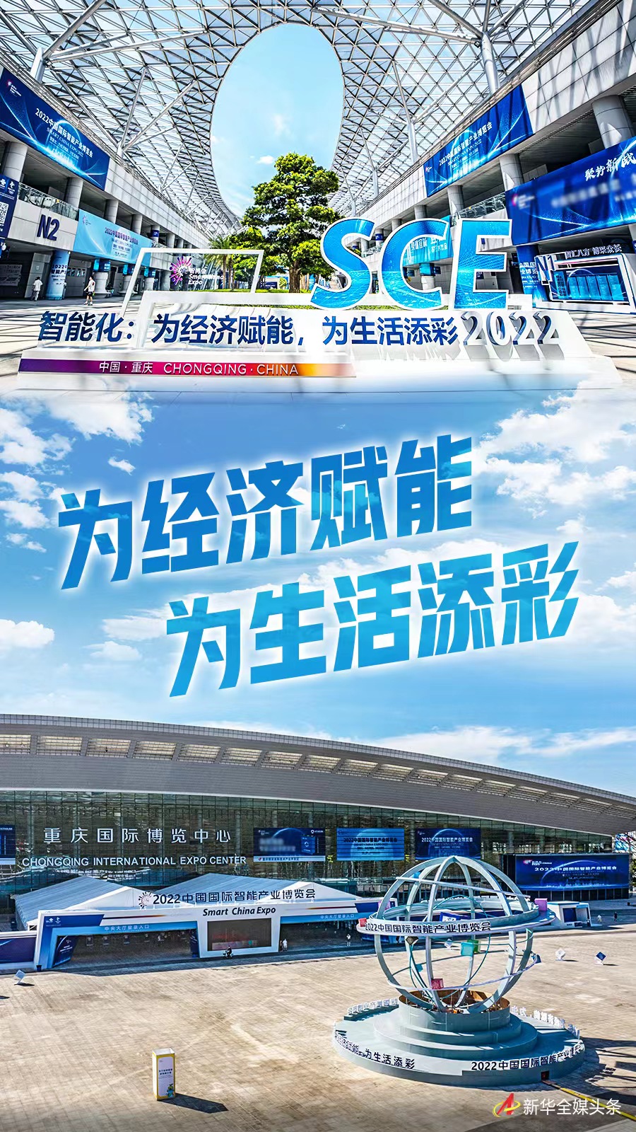 這是8月22日在重慶國際博覽中心拍攝的2022中國國際智能產(chǎn)業(yè)博覽會(huì )展館。新華社記者 黃偉 攝