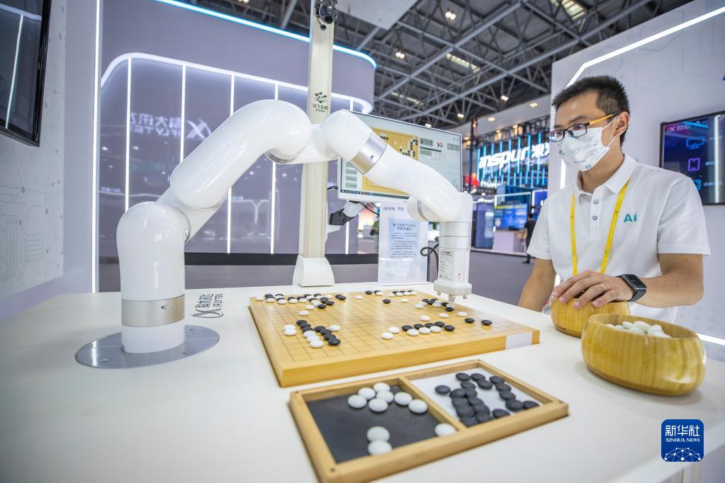 8月21日,2022智博會(huì )科大訊飛展廳的工作人員演示與弈棋機器人對弈。新華社記者 黃偉 攝