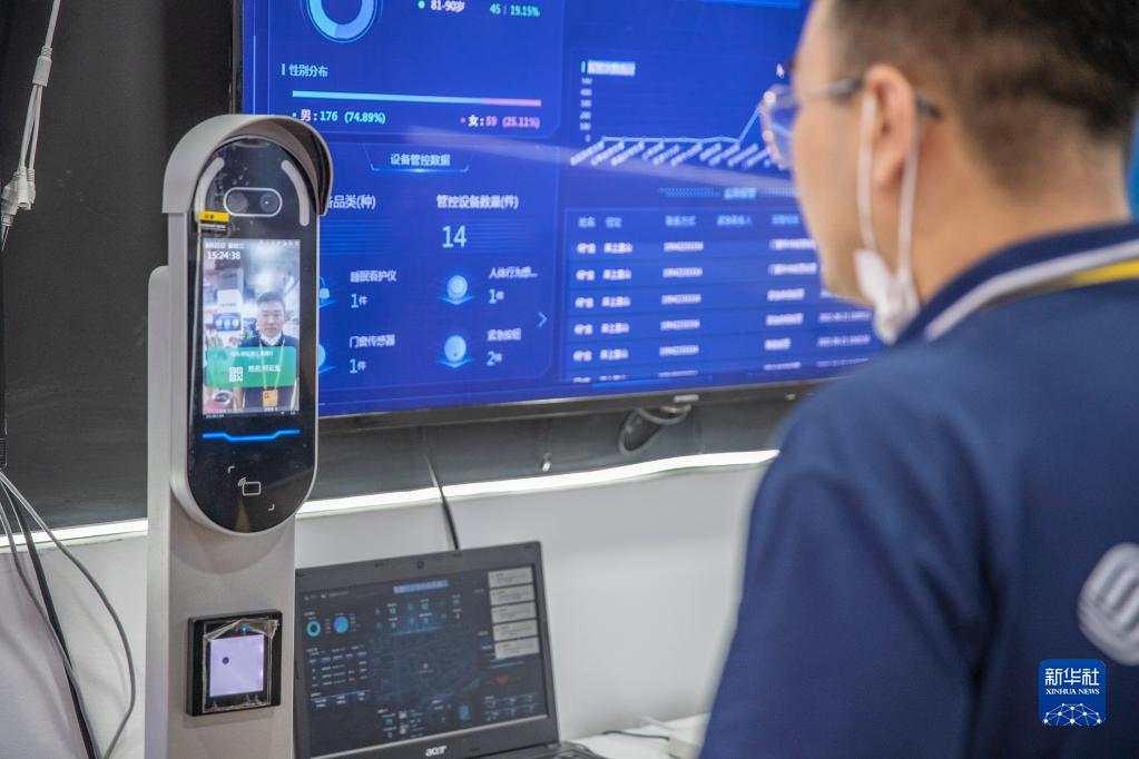 8月21日,工作人員在2022智博會(huì )上演示搭載有健康監測功能的智慧門(mén)禁系統。新華社記者 黃偉 攝