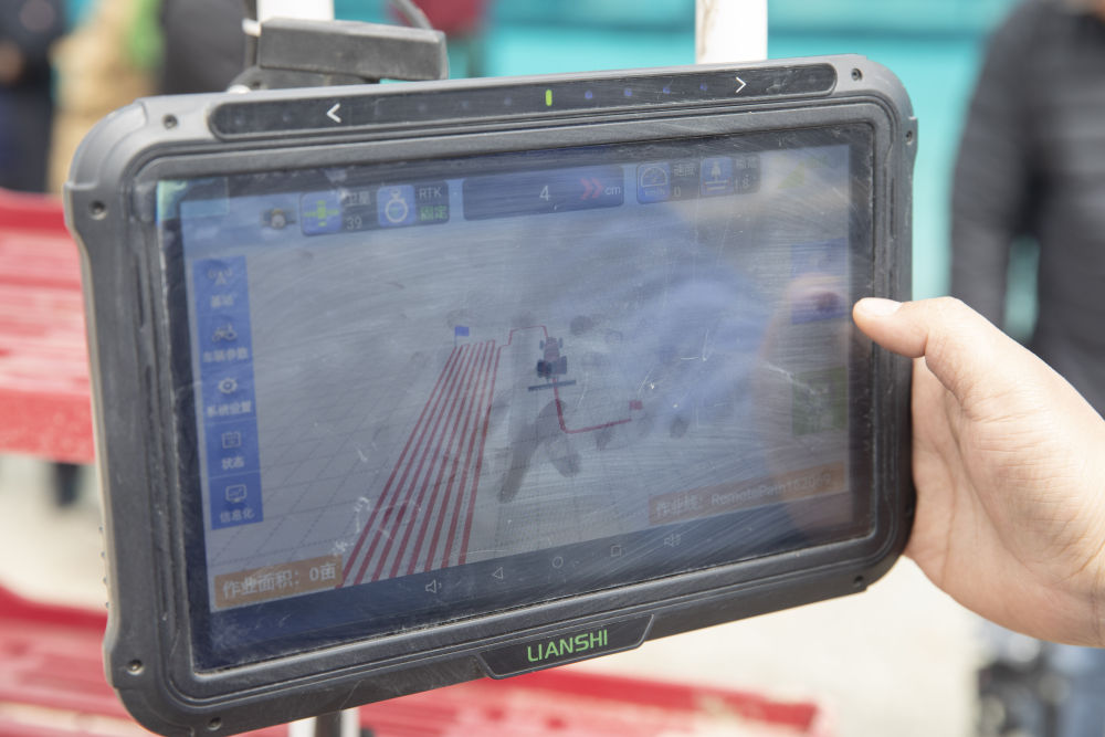 2021年5月11日,工作人員設置無(wú)人駕駛插秧機工作路徑。