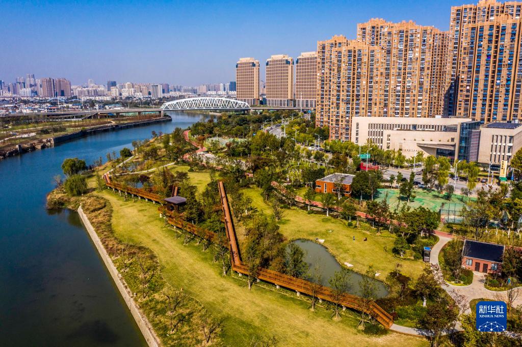 這是2021年11月12日拍攝的合肥市瑤海區南淝河初期雨水治理下沉式綠地工程(無(wú)人機照片)。新華社發(fā)(解琛 攝)