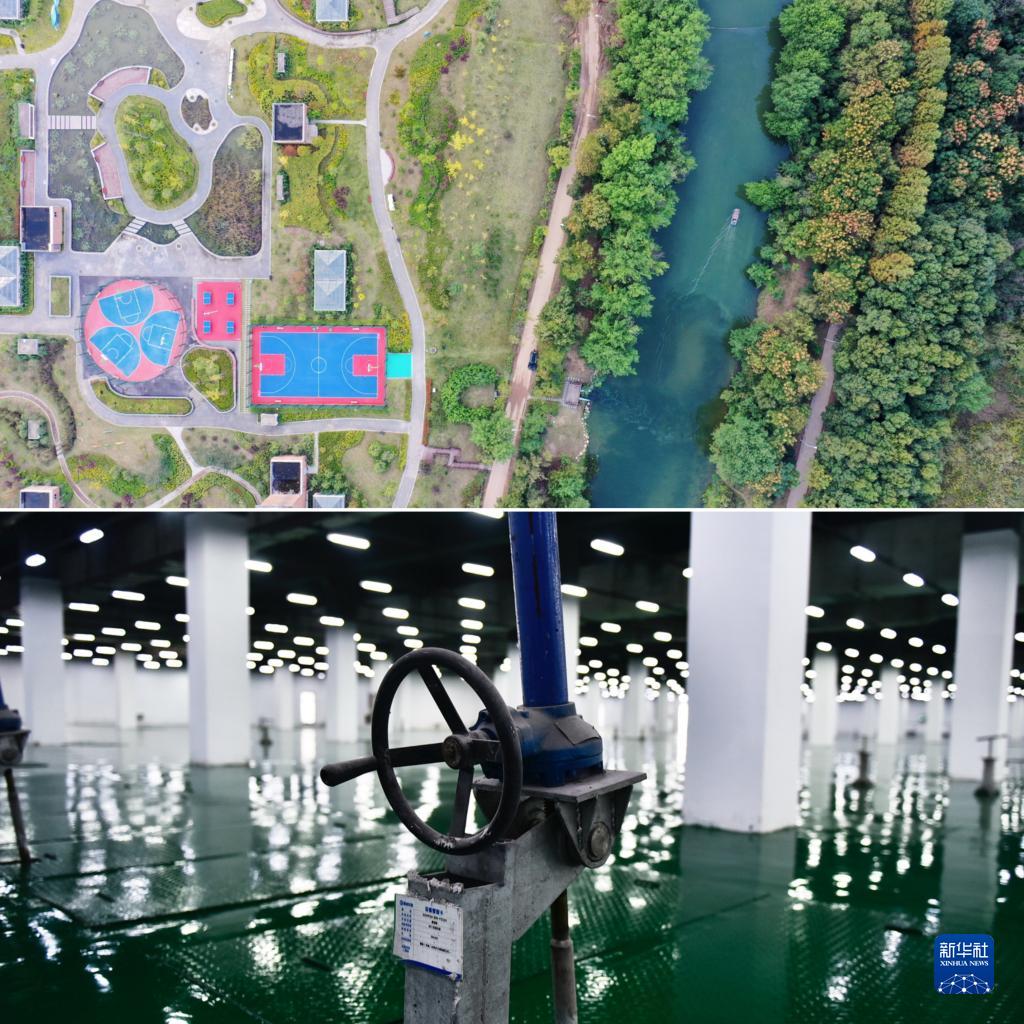 這是一張拼版照片:上圖為2021年10月18日拍攝的合肥清溪凈水廠(chǎng)地面的公園。新華社發(fā)(陳三虎 攝);下圖為2018年7月16日拍攝的合肥清溪凈水廠(chǎng)。新華社發(fā)(葛宜年 攝)新華社發(fā)
