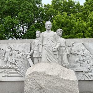 外岡抗日游擊隊紀念館旁的呂炳奎(中)和游擊隊員的雕像。新華社記者 潘旭 攝