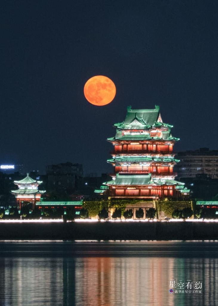 江西省天文愛(ài)好者沈霖2021年9月21日(農歷八月十五)在南昌滕王閣拍攝的中秋月。(本人供圖)