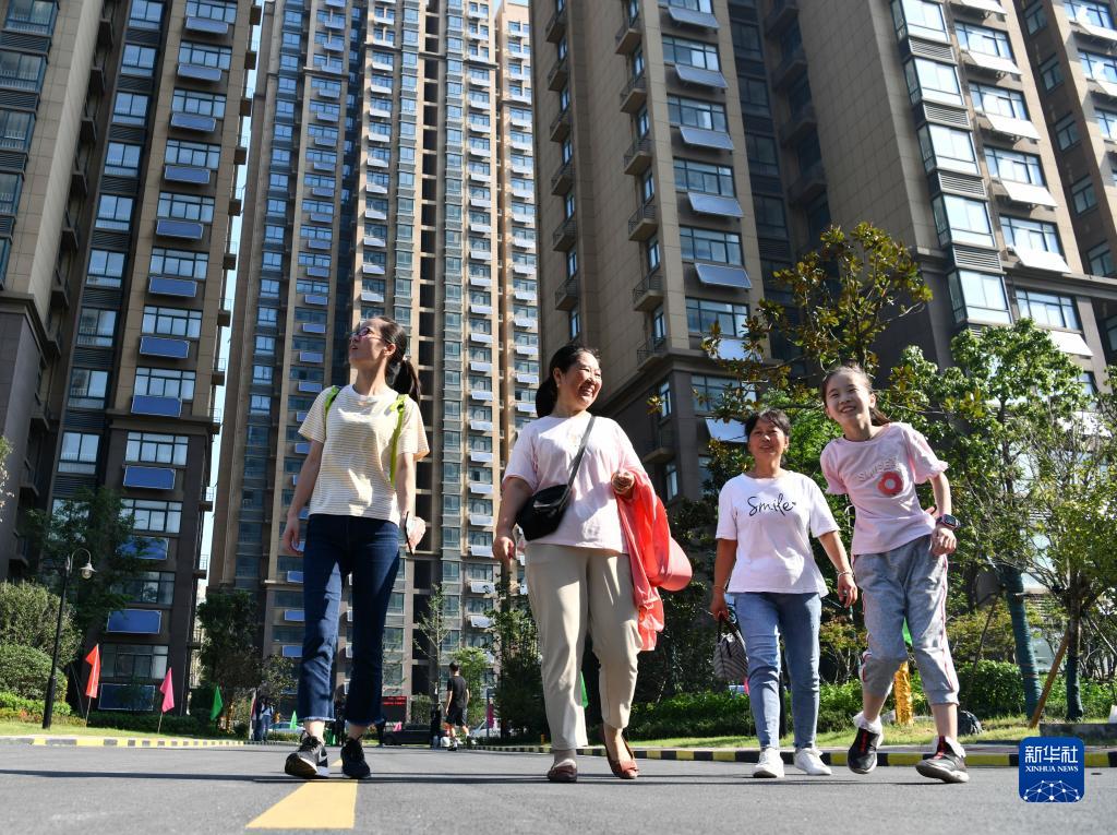 安徽省合肥市包河區同安街道甘棠苑小區回遷居民在小區內散步(2020年9月5日攝)。新華社記者 劉軍喜 攝