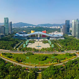 這是深圳市民中心和蓮花山公園一線(xiàn)(2020年10月2日攝,無(wú)人機照片)。新華社記者 梁旭 攝
