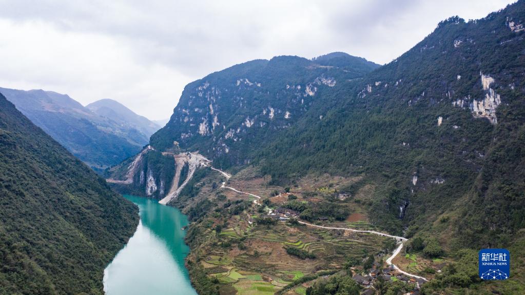 貴州省道真仡佬族苗族自治縣忠信鎮石筍村的絕壁通組公路(2020年1月15日攝,無(wú)人機照片)。新華社記者 陶亮 攝