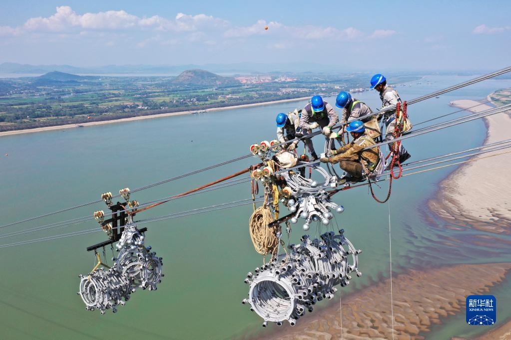 2022年9月16日,白鶴灘至浙江±800千伏特高壓直流輸電工程(白浙線(xiàn))安徽段順利完成長(cháng)江大跨越放線(xiàn)作業(yè)。白浙線(xiàn)是我國實(shí)施“西電東送”戰略的重點(diǎn)工程(無(wú)人機照片)。 新華社發(fā)(趙獻富 攝)