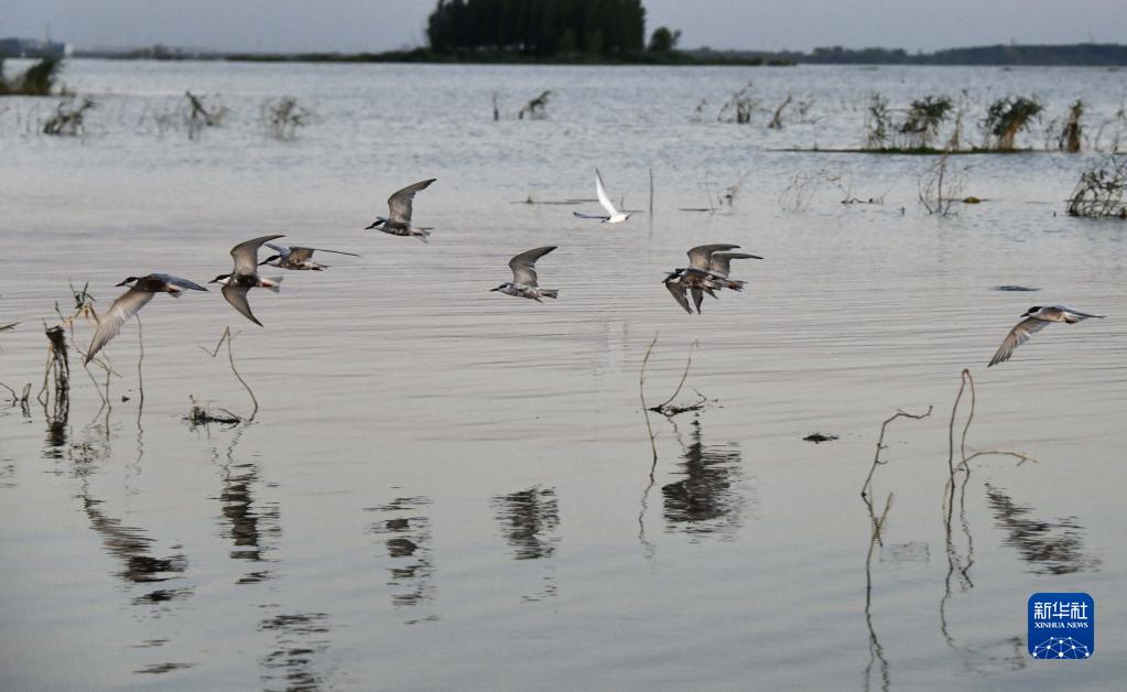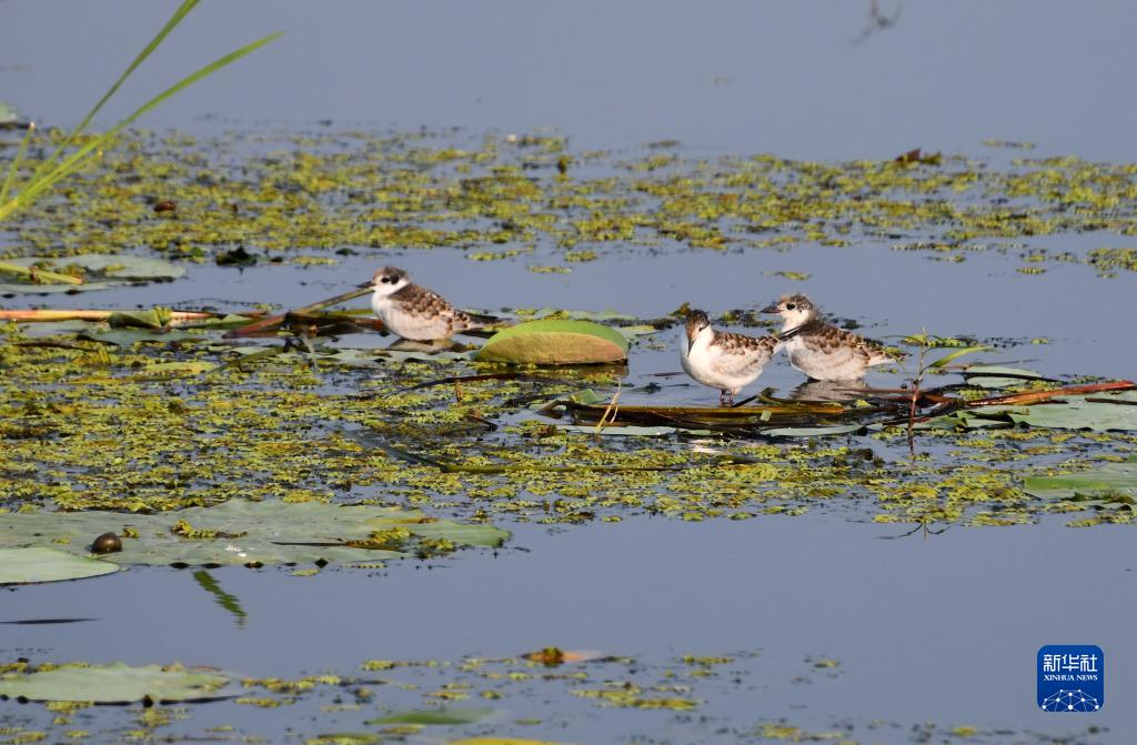 野生鳥(niǎo)類(lèi)在生態(tài)環(huán)境優(yōu)美的微山湖棲息(2022年8月23日攝)。新華社記者 徐速繪 攝