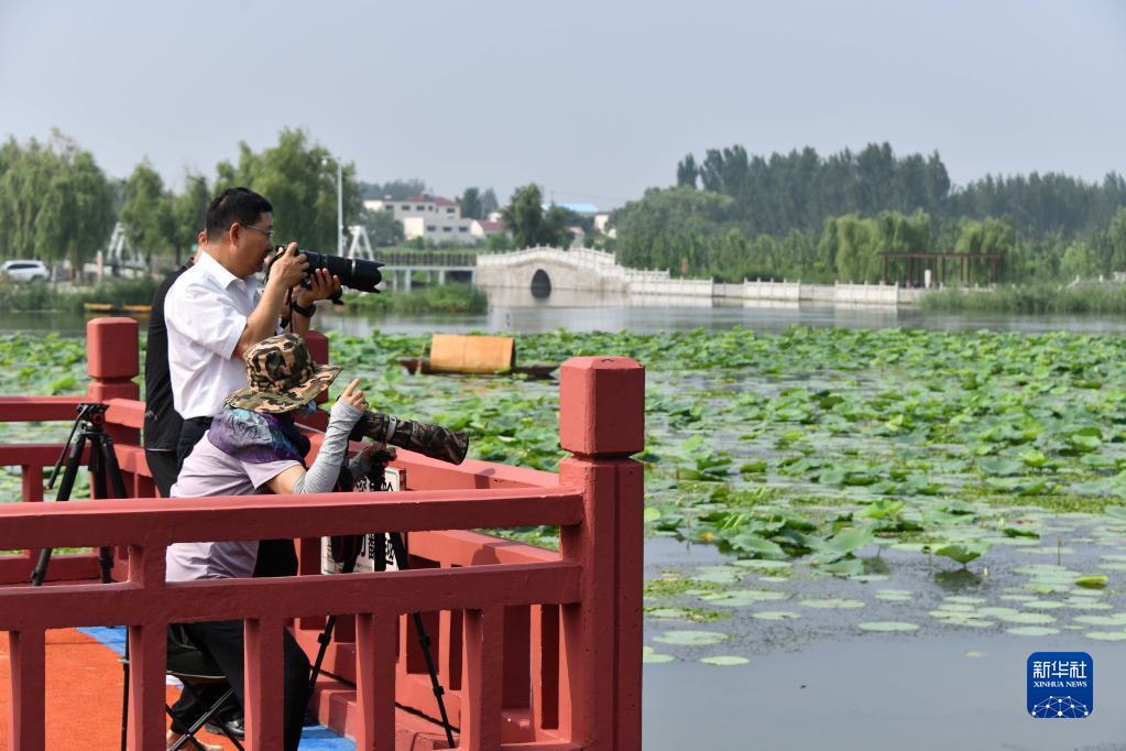 攝影愛(ài)好者在微山湖拍攝野生鳥(niǎo)類(lèi)(2022年7月21日攝)。新華社記者 徐速繪 攝