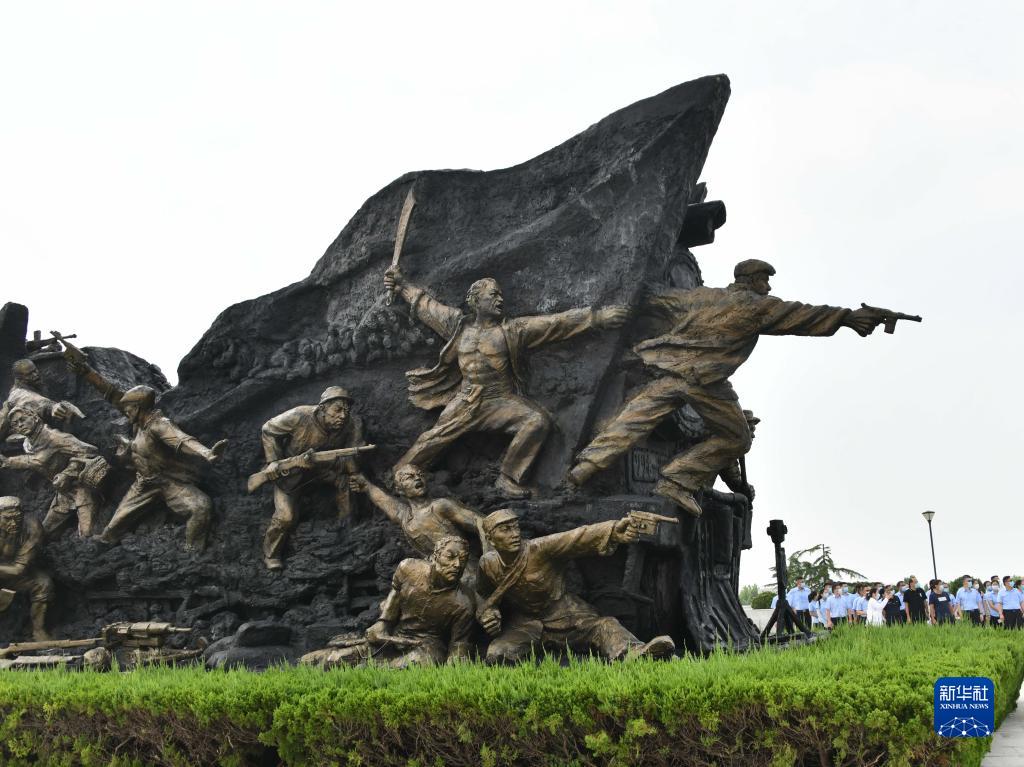 人們在山東省微山縣鐵道游擊隊紀念園內參觀(guān)(2022年7月21日攝)。新華社記者 徐速繪 攝