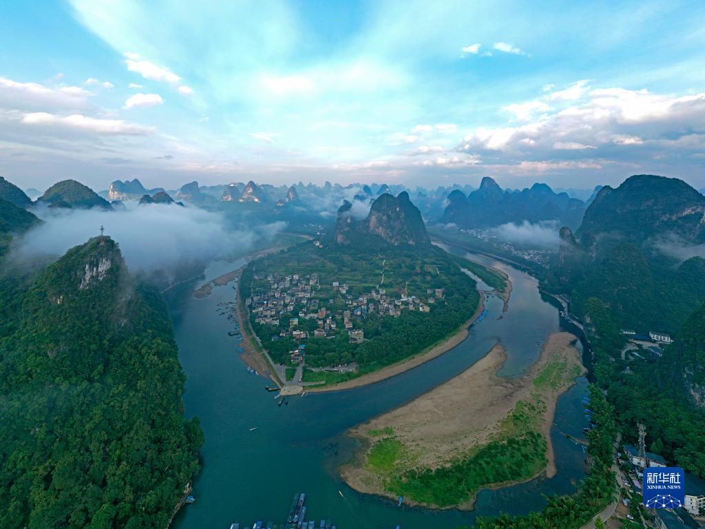 這是在廣西陽(yáng)朔縣興坪鎮拍攝的漓江風(fēng)光(2022年8月25日攝,無(wú)人機照片)。新華社記者 周華 攝