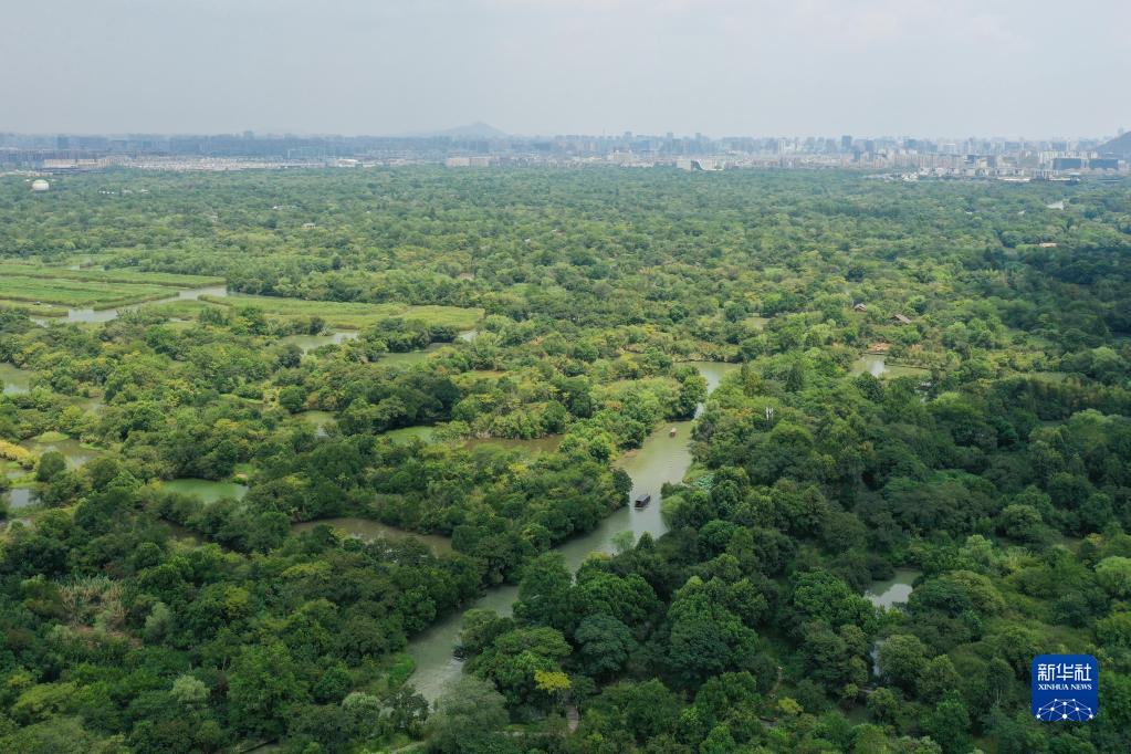 2020年8月22日拍攝的西溪國家濕地公園(無(wú)人機照片)。新華社記者 黃宗治 攝