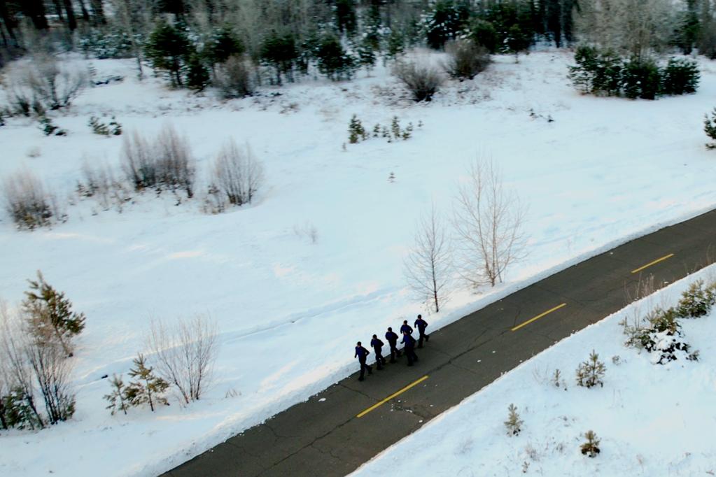 圖為消防員在進(jìn)行晨跑訓練。(受訪(fǎng)單位供圖)
