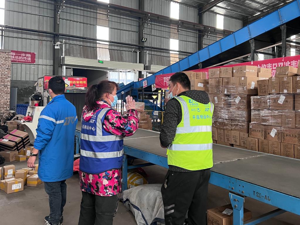 和其他快遞網(wǎng)點(diǎn)不同,在忙碌的身影中,有幾個(gè)人穿著(zhù)亮眼的熒光綠馬甲,在卡車(chē)車(chē)廂內外專(zhuān)注地搬運快件,不時(shí)比劃幾個(gè)手勢。