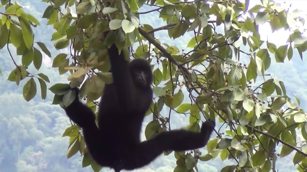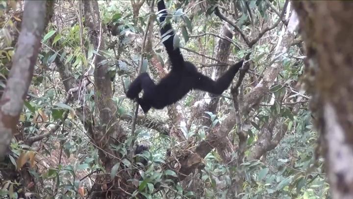 早些年,受盜獵等因素影響,長(cháng)臂猿很怕人。人只要稍一靠近,他們就會(huì )以“風(fēng)一樣的速度”逃離,由此它們也被當地人稱(chēng)為“風(fēng)猴”。