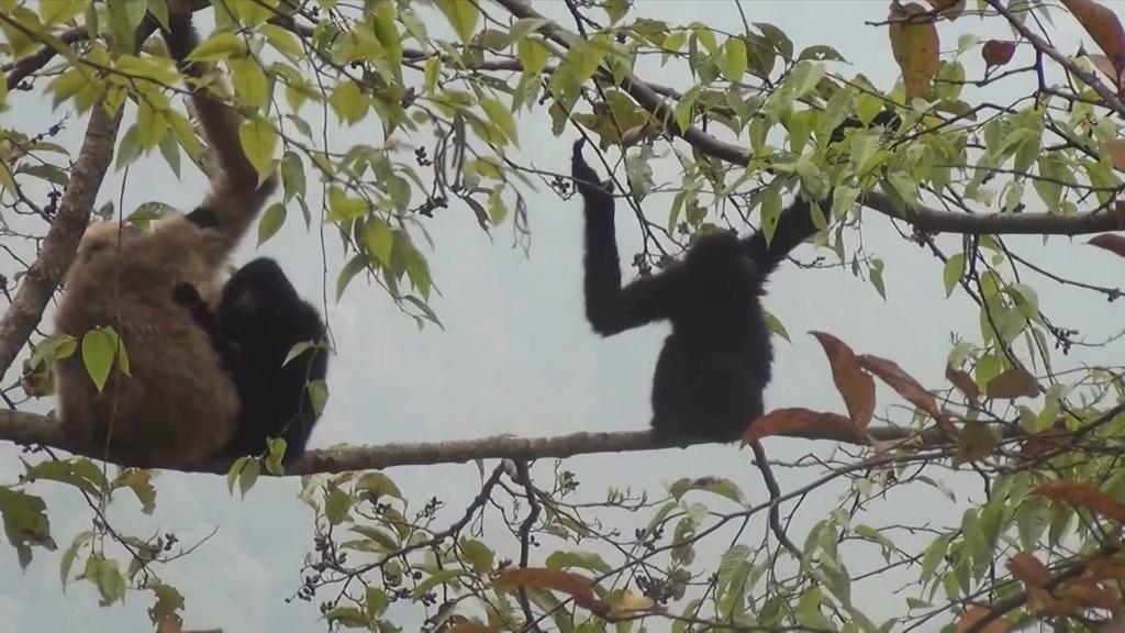 早晨7點(diǎn)多鐘,天剛亮,伴隨著(zhù)長(cháng)臂猿一陣接一陣的叫聲,原本安靜的山林一下子熱鬧了起來(lái)。