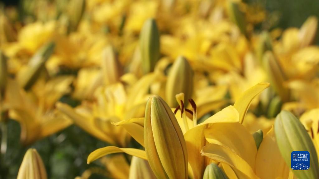 這是2022年8月17日在黑龍江省漠河市中藥材展示園內拍攝的百合花。新華社發(fā)