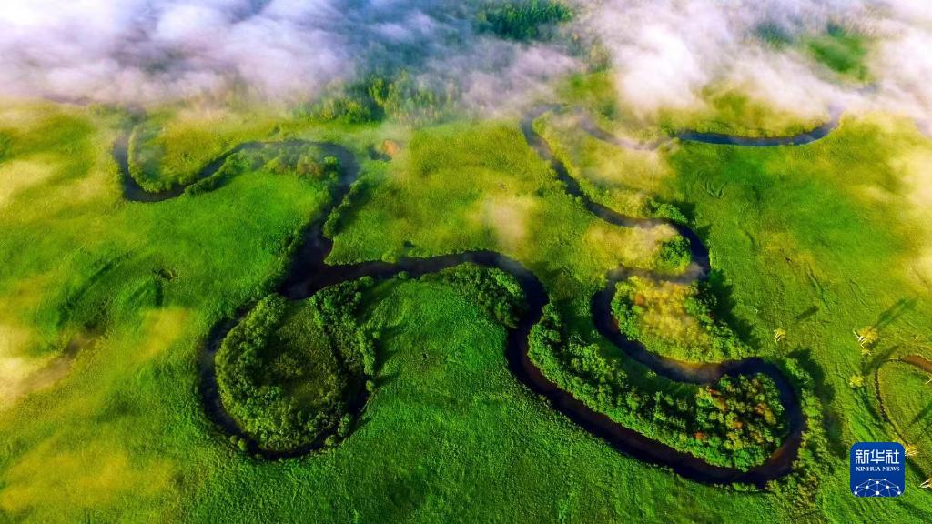 這是2022年6月20日拍攝的大興安嶺地區南甕河濕地(無(wú)人機照片)。新華社發(fā)