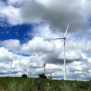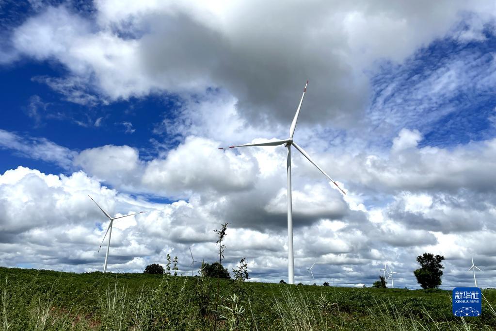 這是2022年10月4日在泰國猜也蓬府拍攝的由中國金風(fēng)科技提供的風(fēng)力發(fā)電機。新華社記者 宋宇 攝