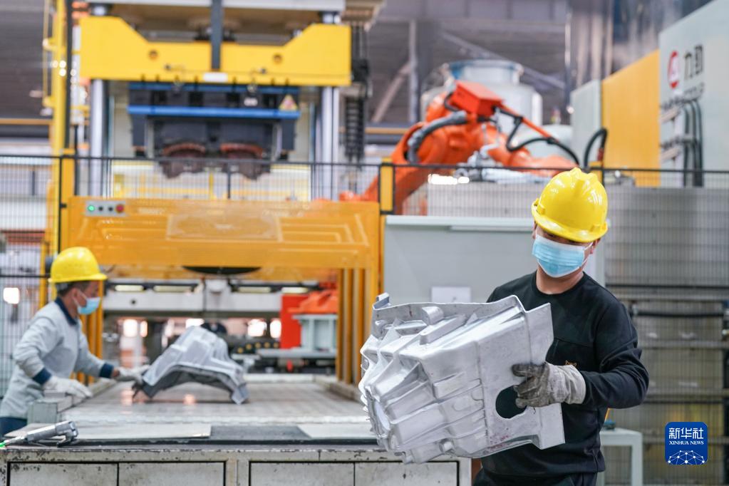 11月7日,在安徽省馬鞍山市含山縣輝晗精密機械有限公司,工人在壓鑄生產(chǎn)線(xiàn)上工作。新華社記者 劉軍喜 攝