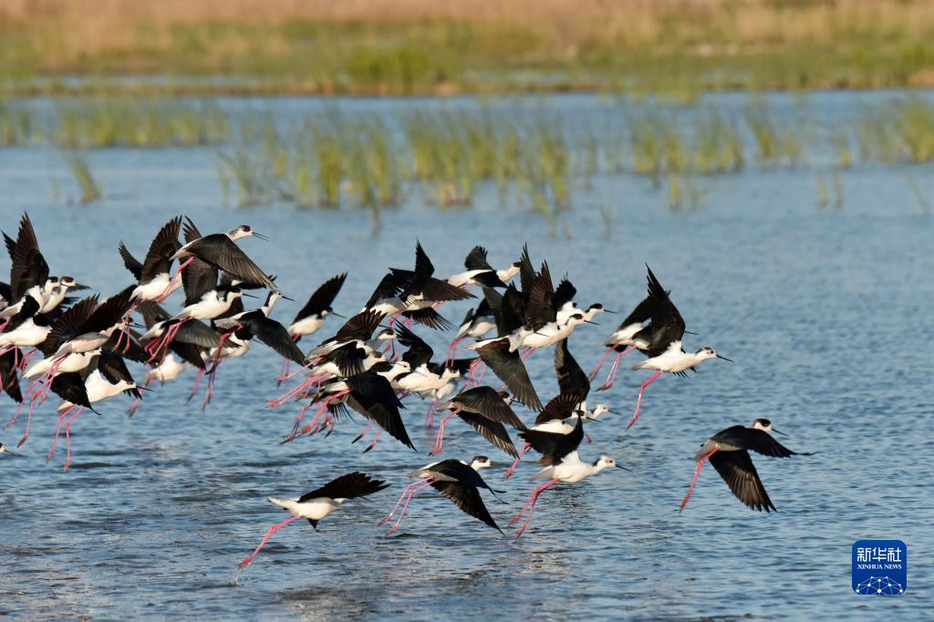 在雄安新區白洋淀拍攝的鳥(niǎo)群(2022年4月15日攝)。 新華社發(fā)(周龍山 攝)