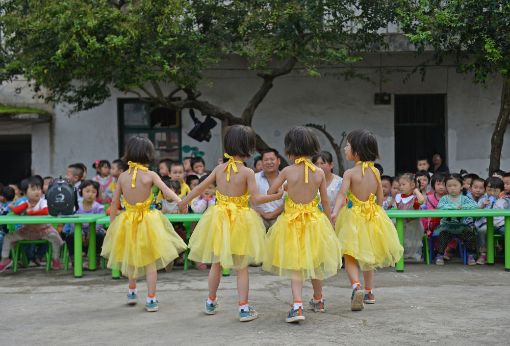 四姐妹都進(jìn)了鄉里的幼兒園,園長(cháng)也只收了兩人的學(xué)費?!傲弧眱和澘斓搅?,幼兒園正組織孩子們彩排節目,園長(cháng)還特意為四姐妹編排了一個(gè)時(shí)裝秀的節目。身穿裙子的四姐妹,就像陽(yáng)光下盛開(kāi)的四朵小黃花,格外耀眼。