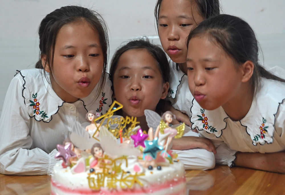 四胞胎姐妹在新家里吹蠟燭過(guò)生日(2020年9月10日攝)。