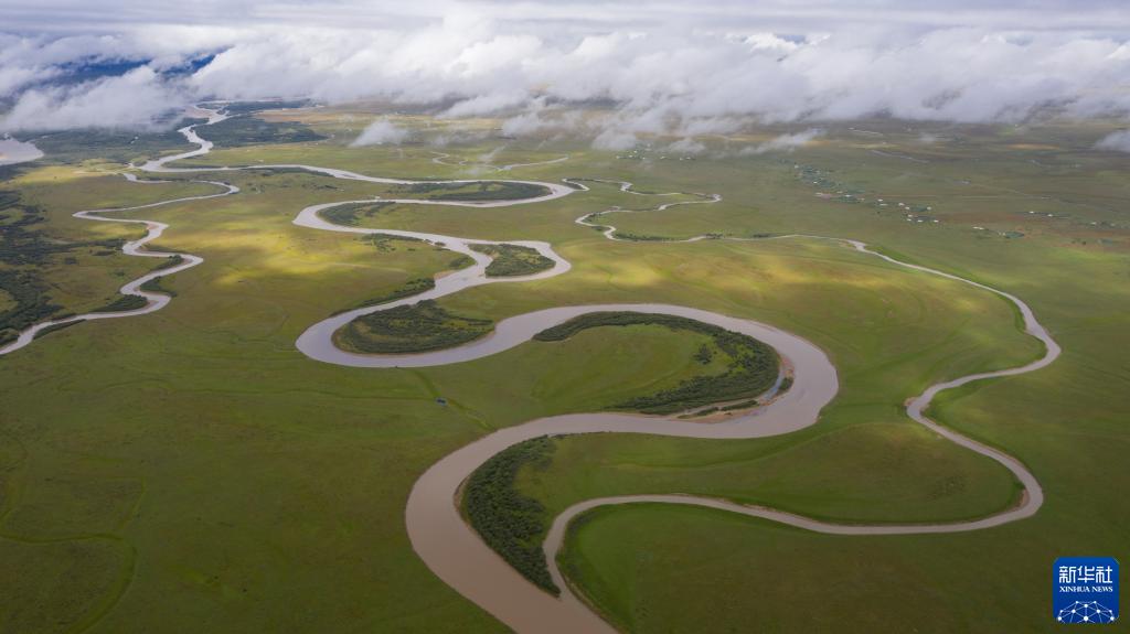 俯瞰位于四川省若爾蓋縣唐克鎮的白河牧場(chǎng)的黃河出川口(無(wú)人機照片,2022年8月16日攝)。新華社記者 江宏景 攝
