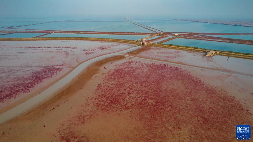 在山東黃河三角洲國家級自然保護區拍攝的濕地景色(無(wú)人機照片,2022年9月18日攝)。新華社記者 范長(cháng)國 攝