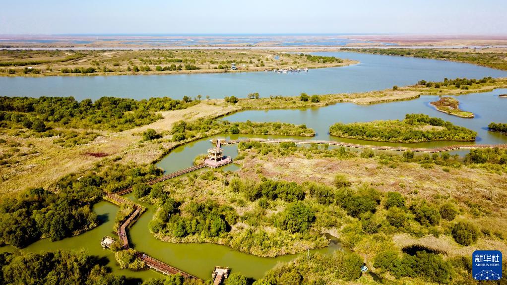 山東黃河三角洲國家級自然保護區景色(無(wú)人機照片,2022年10月18日攝)。新華社記者 郭緒雷 攝