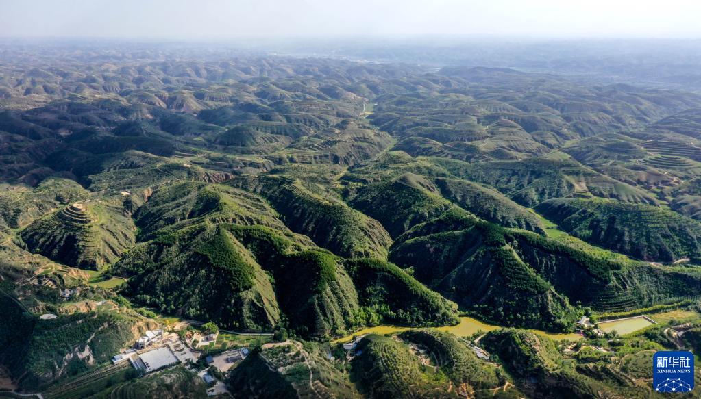 黃土溝壑中的陜西省榆林市米脂縣銀州街道高西溝村滿(mǎn)眼綠色(2021年9月10日攝,無(wú)人機照片)。新華社記者 陶明 攝