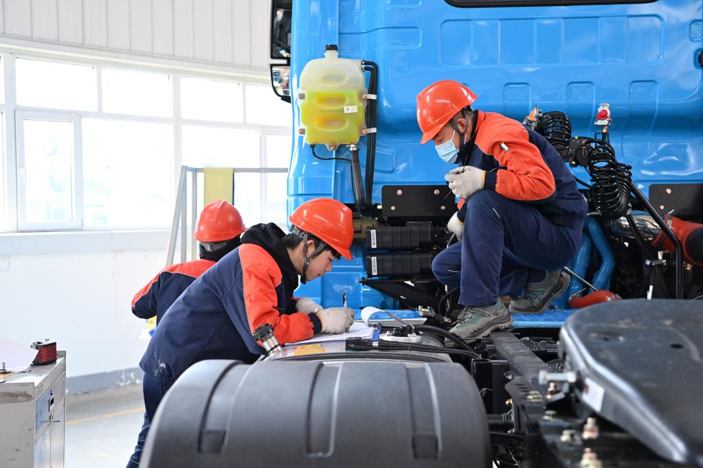 “政府為我們在高速路口開(kāi)通了綠色通道,保障基地生產(chǎn)物料的持續供應?,F在防疫政策調整,我們的工作重點(diǎn)回到了生產(chǎn)制造,組裝車(chē)間內工人們都是全員行動(dòng),一條生產(chǎn)線(xiàn)每天可組裝10輛重卡,生產(chǎn)效率達到了最高?!崩詈阏f(shuō)。