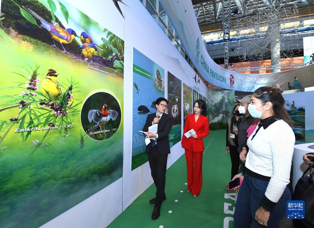 2022年12月10日,工作人員在加拿大蒙特利爾《生物多樣性公約》第十五次締約方大會(huì )(COP15)第二階段會(huì )議的中國角江西日活動(dòng)上為與會(huì )者講解。新華社記者 任鵬飛 攝