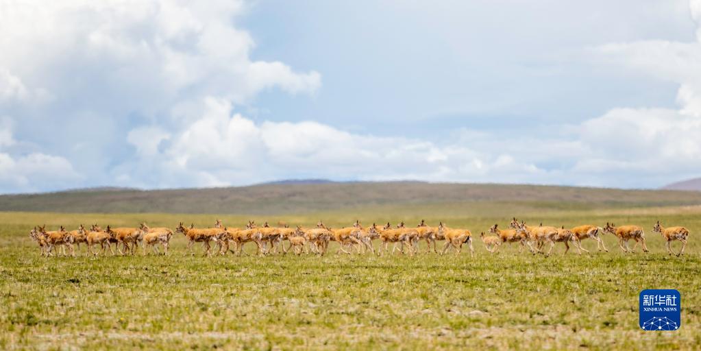 這是在西藏自治區羌塘國家級自然保護區內拍攝的藏羚羊(2022年7月11日攝)。新華社記者 周荻瀟 攝