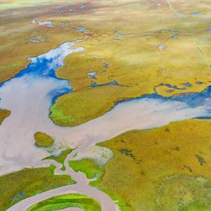 這是甘肅省甘南藏族自治州瑪曲縣阿萬(wàn)倉濕地內的一處沼澤(2022年9月17日攝,無(wú)人機照片)。新華社記者 郎兵兵 攝
