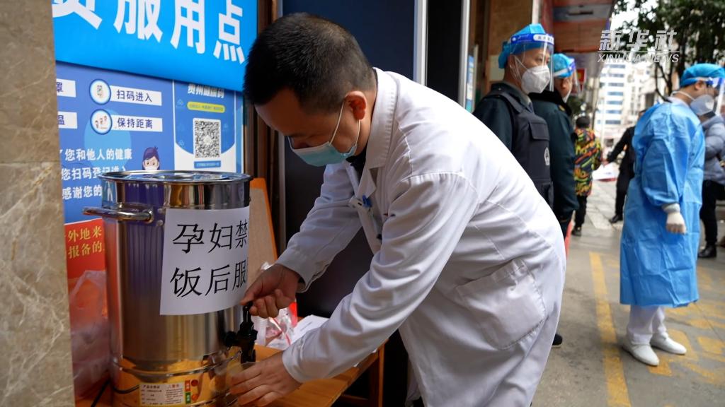 貴州省遵義市紅花崗區各級醫療機構向市民免費供應中藥湯劑。