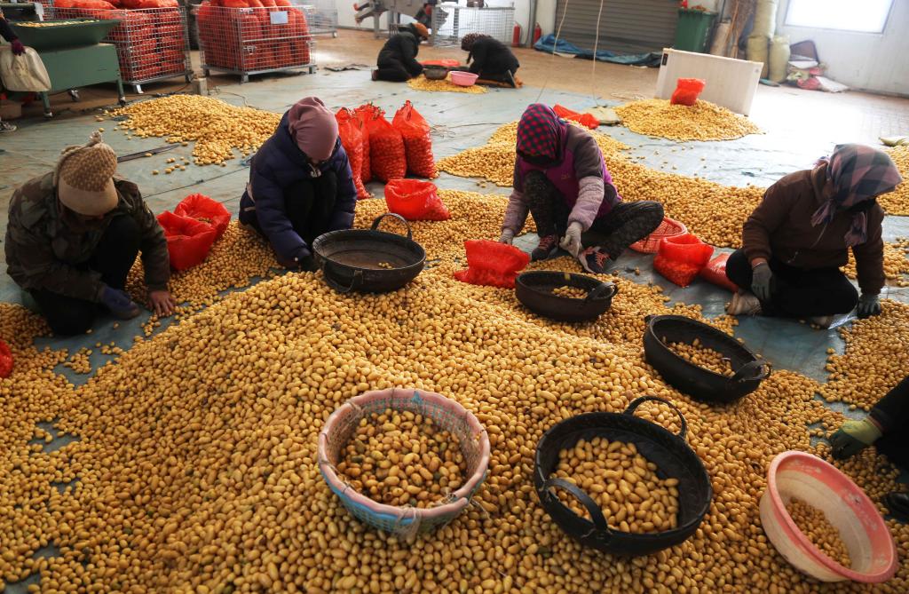 在定西市安定區香泉鎮馬鈴薯產(chǎn)業(yè)園內,工人在篩選馬鈴薯原原種。(新華社發(fā))