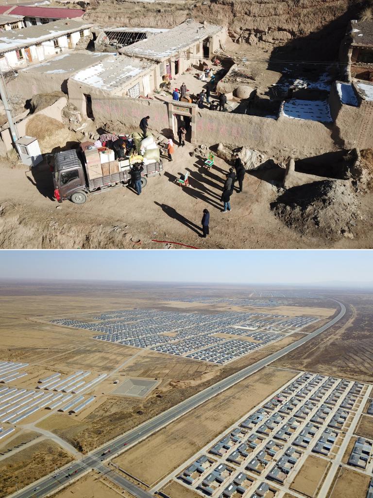 下圖為古浪縣黃花灘生態(tài)移民區。(無(wú)人機照片 新華社記者范培珅 攝)