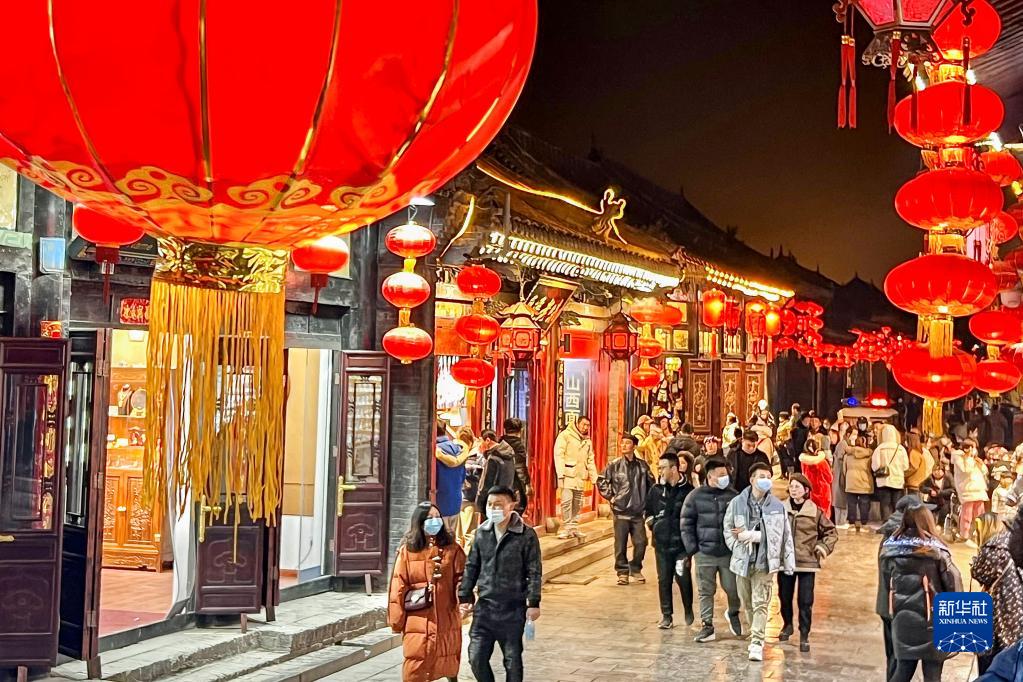 這是平遙古城內明清街夜景(2022年2月7日攝)。新華社發(fā)(梁生仁攝)