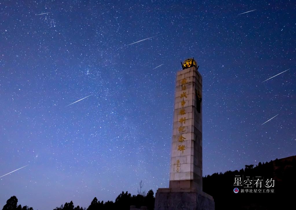 這是天津市天文愛(ài)好者趙中天2022年1月4日在天津市薊州區拍攝的象限儀座流星雨(多張疊加)。(本人供圖)