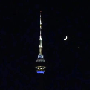 這是天津市天文愛(ài)好者李云2021年11月8日晚在天津拍攝的木星合月。(星緣山風(fēng)隊供圖)