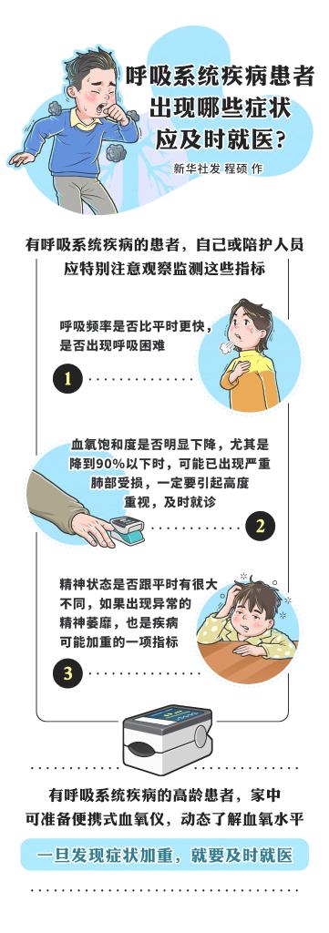 徐凱峰建議,有呼吸系統疾病的高齡患者,家中可準備便攜式血氧儀,動(dòng)態(tài)了解血氧水平。一旦發(fā)現癥狀加重,就要及時(shí)就醫。
