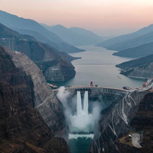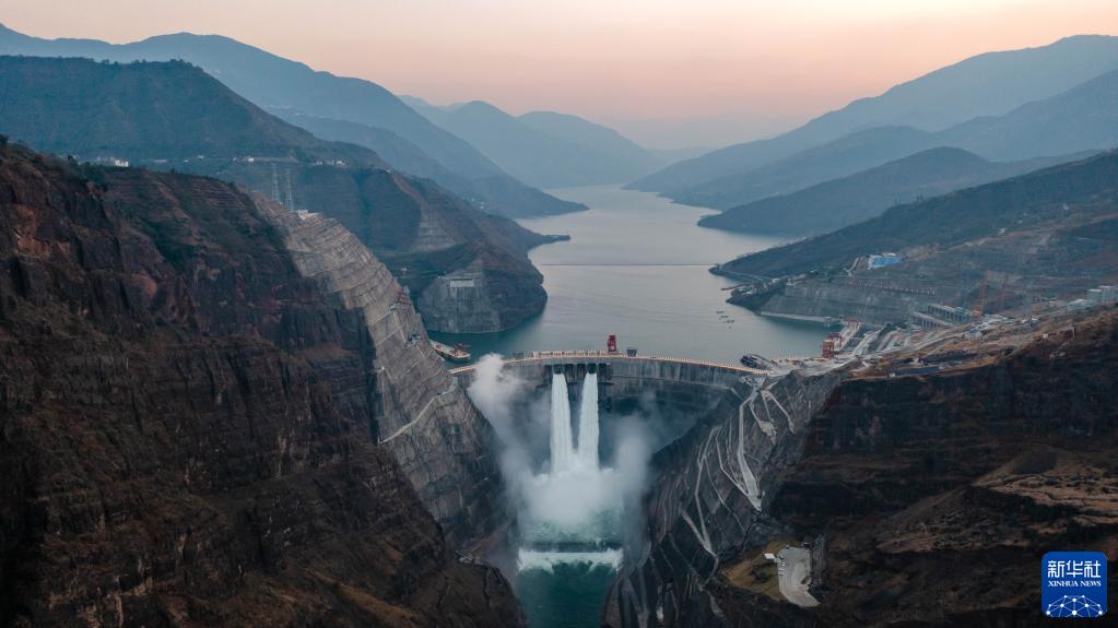 白鶴灘水電站一景(2022年12月19日攝,無(wú)人機照片)。新華社記者 胡超 攝