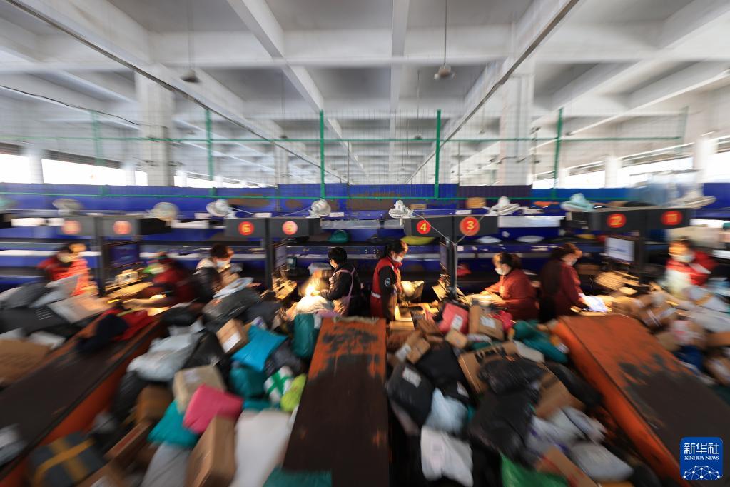 在浙江省湖州市吳興區八里店鎮一家物流企業(yè),工作人員分揀快遞(2022年12月12日攝)。新華社發(fā)(何偉衛攝)