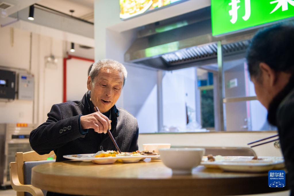 老人在湖南省常德市武陵區長(cháng)者大食堂就餐(2021年11月16日攝)。新華社記者 陳思汗 攝