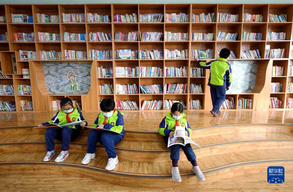 河北省石家莊市橋西區裕華西路小學(xué)參加課后托管的學(xué)生在圖書(shū)館閱讀(2021年3月11日攝)。新華社記者 王曉 攝