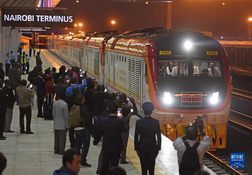 這是在肯尼亞首都內羅畢,首班從蒙巴薩發(fā)出的列車(chē)到達蒙內鐵路內羅畢南站(2017年5月31日攝)。由中國企業(yè)承建的蒙內鐵路當日建成通車(chē)。五年來(lái)蒙內鐵路累計發(fā)送旅客778.5萬(wàn)人次,單日旅客最高發(fā)送量突破10000人。新華社記者 陳誠 攝